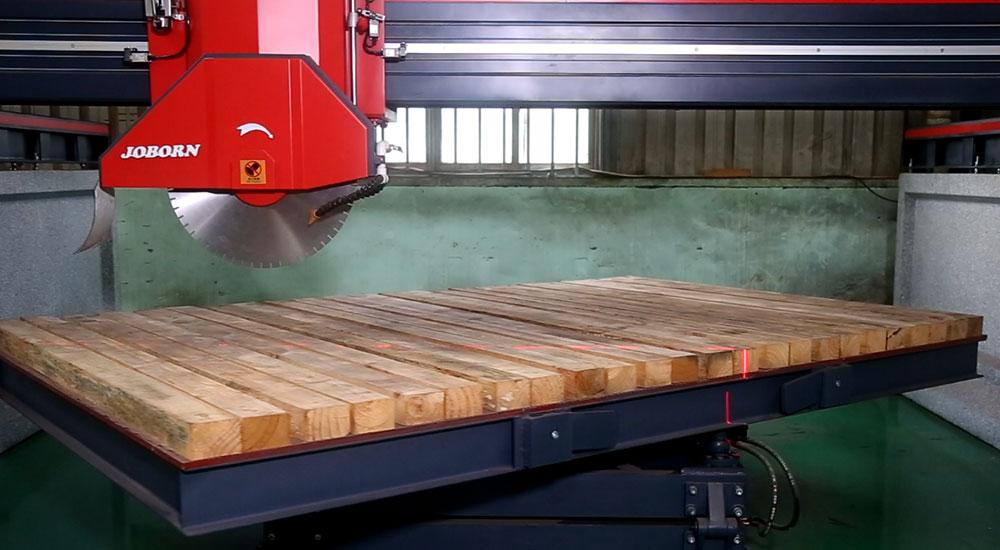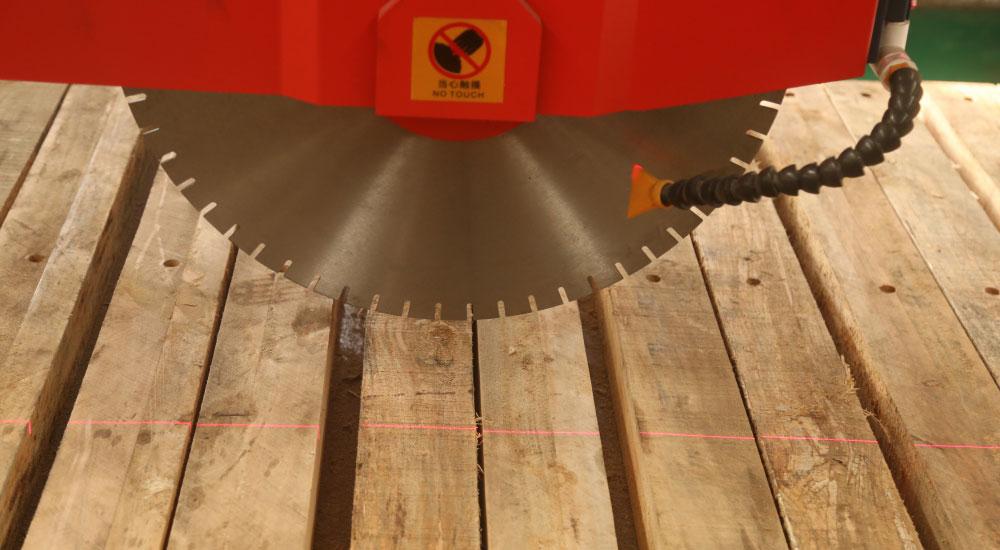 A serra ponte para corte de pedra é de fácil operação devido ao seu sistema de controlo por microcomputador e à sua interface. O posicionamento da cabeça é feito através de um aparelho de alinhamento via laser, de acordo com a linha decorte. O diâmetro máximo das lâminas é de 450mm, 600mm e 700mm, e as correspondentes profundidades máximas de corte são de 10mm, 180mm e 230mm.