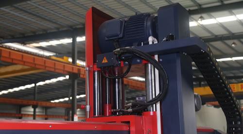 Com a lâmina sendo controlada por um sistema hidráulico duplo feito em Taiwan quando ao seu movimento para cima e baixo, a serra ponte funciona de forma estável.